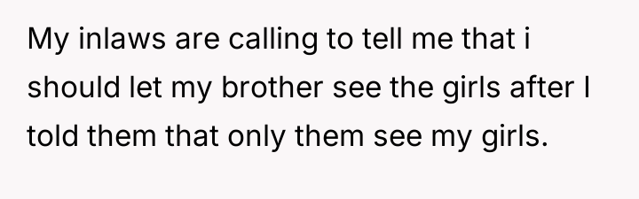 'Aita? For not letting my brother in law see my girls after he called CPS on me?'