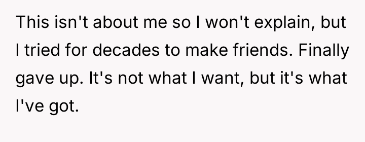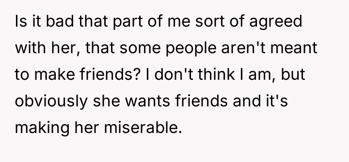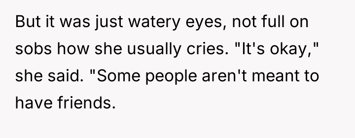 In my opinion, the story highlights a crucial moment in their relationship that calls for patience and understanding. Instead of focusing on what they can do next, sometimes the best support is to listen and validate feelings without rushing to fix things. Friendships and social connections can be complicated, but showing consistent care and presence can help rebuild hope and trust over time.