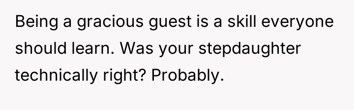 AITA for not putting a stop to my stepdaughter “correcting” the food the host made