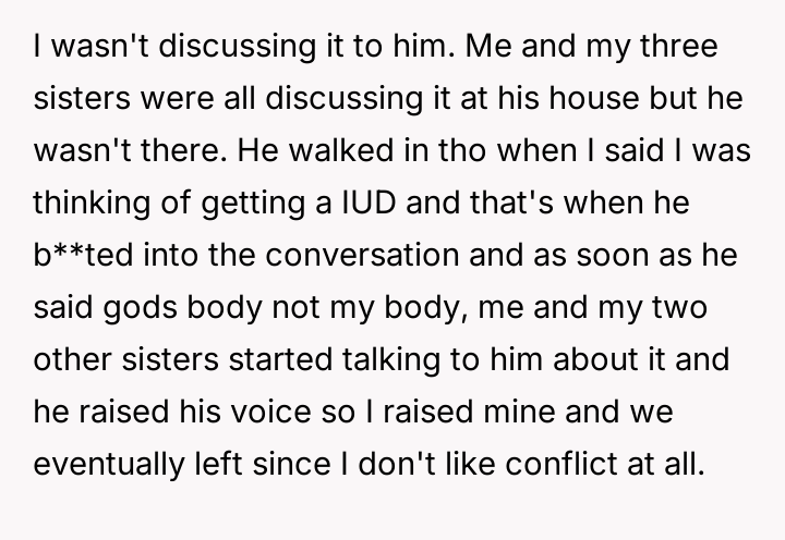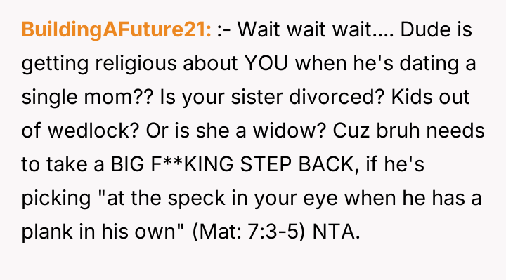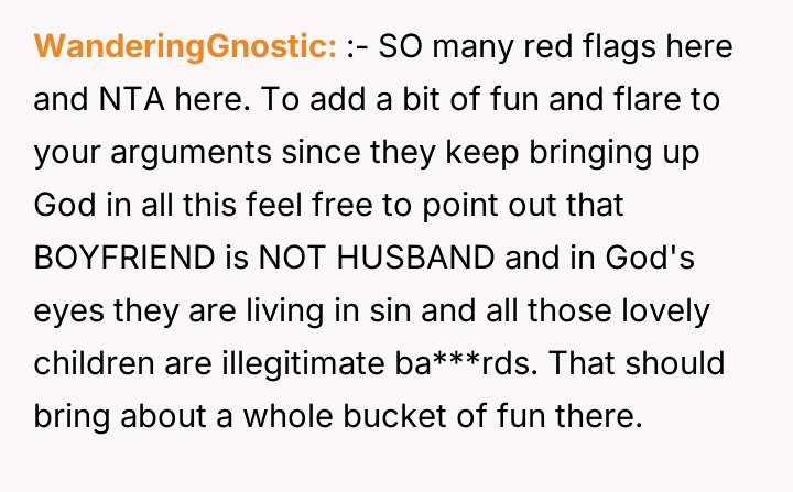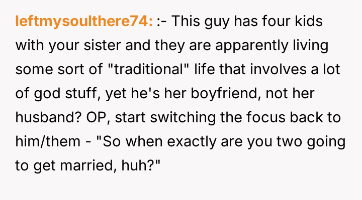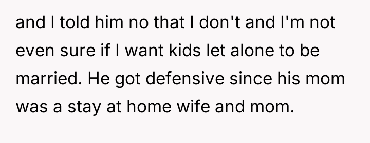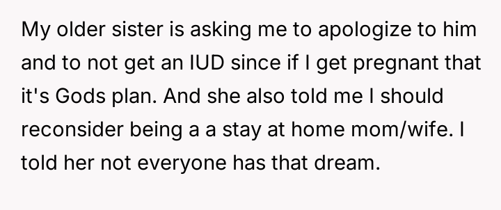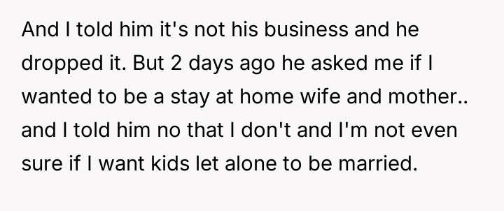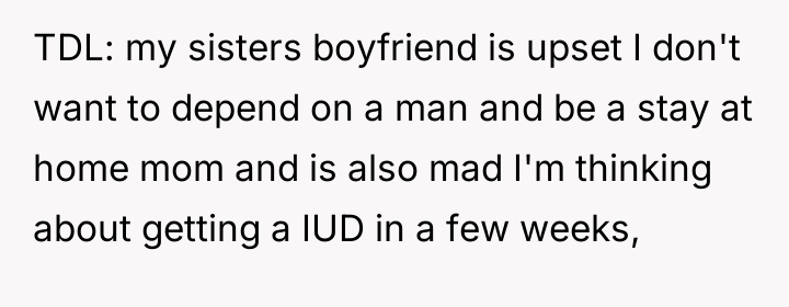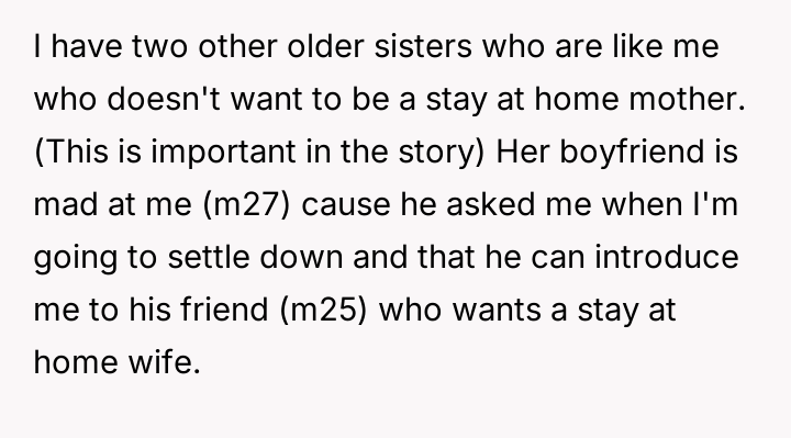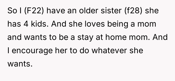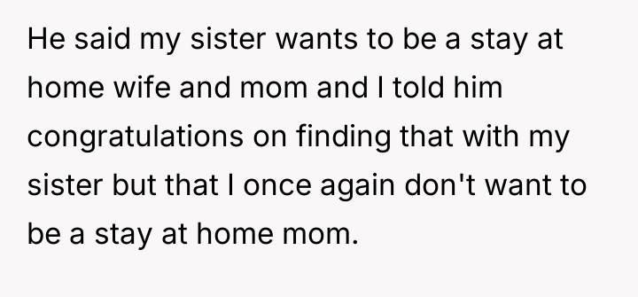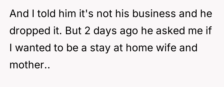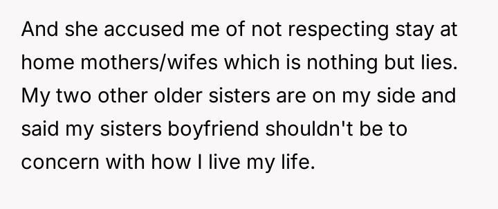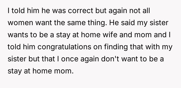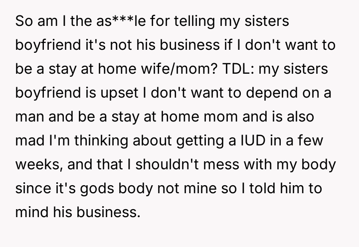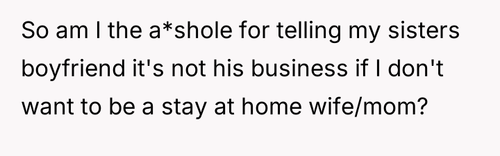 AITHA for telling my sisters boyfriend it’s not his business if I don’t want to be a stay at home mom?