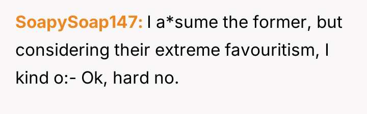 In my opinion, this story highlights the deep impact of parental favoritism and sibling rivalry on a person's self-esteem and sense of belonging. It's important for anyone in a similar situation to recognize that they deserve equal love and respect, and to seek help or create distance if necessary. While the past cannot be changed, taking control of one's own happiness and creating a supportive environment can lead to a healthier future.