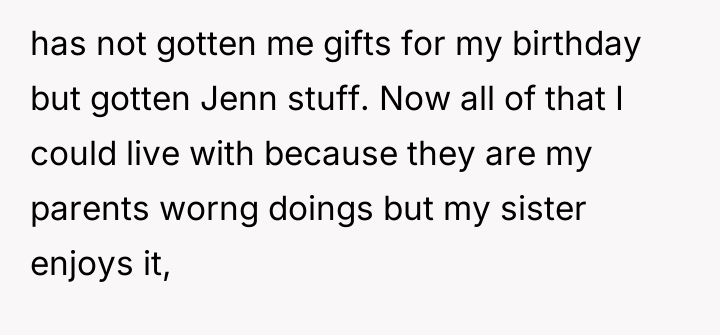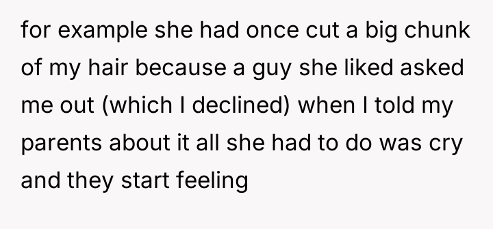 After reading through the Reddit comments, many readers empathized with the narrator's feelings of neglect and frustration towards their parents' favoritism and their sister's manipulative behavior. Some suggested seeking therapy or establishing boundaries with both the parents and sister to protect one's emotional well-being. Others reminded readers that while family dynamics can be painful, finding support outside the family can be a crucial step in healing.