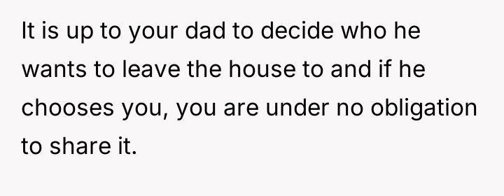 AITA For Refusing To Agree To Split Ownership Of My Dad's House With My Sister?