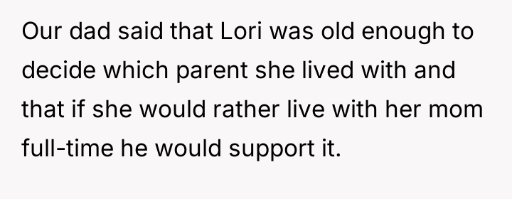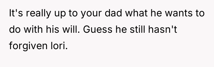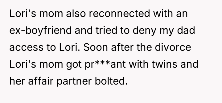 Having read through the Reddit comments, it's clear that many empathize with the father's difficult position. Users pointed out the delicate balance between supporting Lori while not enabling her mother's instability. Most agreed that the dad was right to protect his household, especially since the mother had previously caused turmoil and attempted to manipulate access to Lori and the twins. Some commenters suggested family counseling or mediation to improve communication and find a middle ground.