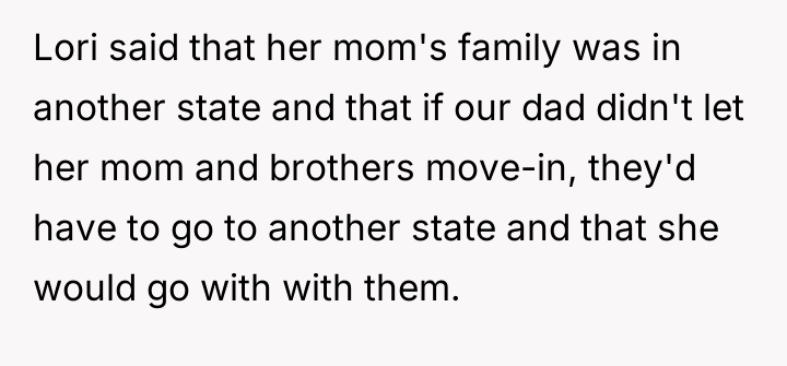 In my opinion, this story highlights the challenges blended families face when past grievances and trust issues linger. The father's hesitance to let Lori's mom and brothers move in is understandable given the history, but it’s equally important to consider Lori's feelings and need for family support. Ultimately, open dialogue and setting healthy boundaries may be the best path forward to ensure Lori feels safe and supported without reigniting old conflicts.