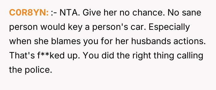 AITA for calling police on a neighbour after she keyed my car because of books I write