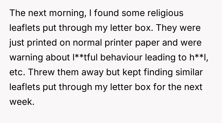 From my perspective, this story highlights the importance of respecting personal boundaries and the right to privacy, especially in close living environments. The author's professionalism and discretion about her career show a thoughtful approach to her work-life balance. It's a reminder that everyone deserves to feel safe and respected in their own home without unwanted advances or assumptions based on their profession.