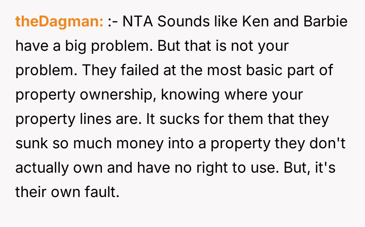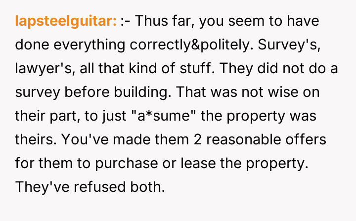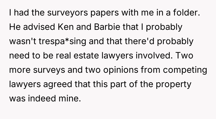 In my opinion, this story serves as a reminder of the need for clear communication and legal clarity when it comes to property. It's easy to see how misunderstandings like this can escalate unnecessarily, and how they might be avoided with better initial research or even mediation between neighbors. Ultimately, the lesson here is to always be vigilant and proactive about your property rights, while also striving to maintain good neighborly relations.