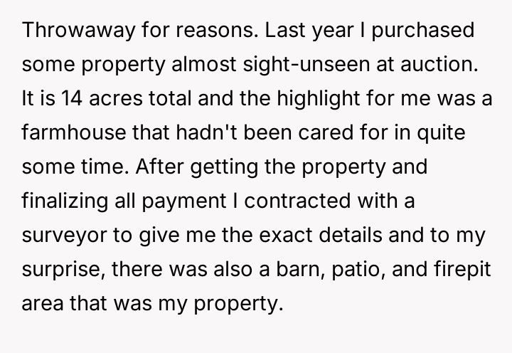 Reading through the Reddit comments on this story, it's clear that many people empathize with the original poster's frustration and confusion. The situation highlights the complexities that can arise when property boundaries and ownership details aren't fully understood or clearly communicated. Many commenters pointed out the importance of thorough due diligence and keeping good records when purchasing land, especially at auction. Others sympathized with the stress of dealing with law enforcement and neighbors who believe they have rightful claims, despite contrary evidence.