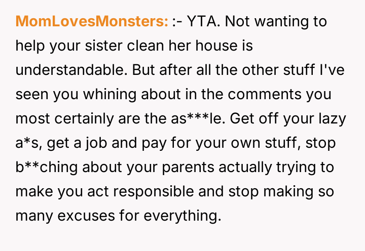 Reading through the Reddit comments, it’s clear many sympathize with the original poster’s frustration. They feel that the mother’s demands and punishments around internet and phone access are unfair and controlling, especially since the poster is simply choosing not to participate in household chores they don’t want to do. Several commenters suggest that setting boundaries is important, and that the mother’s approach might damage their relationship more than help it. Others highlight the importance of communication and compromise, emphasizing that caring for a new baby is a family effort but shouldn’t come at the cost of autonomy or respect.