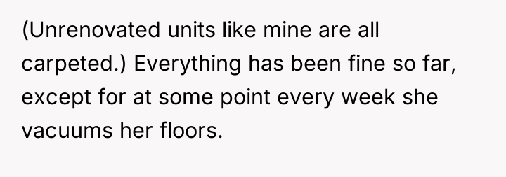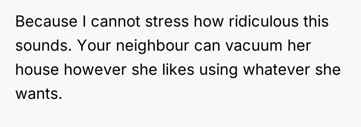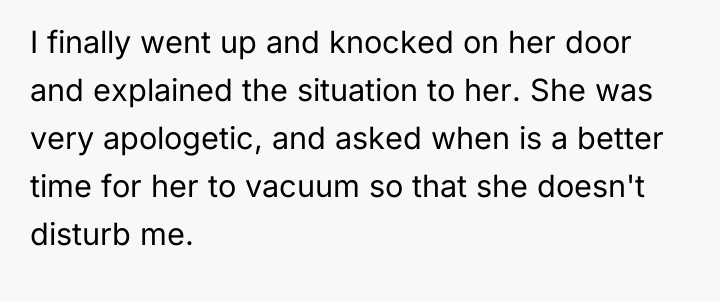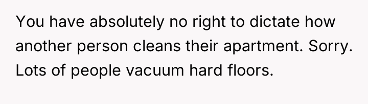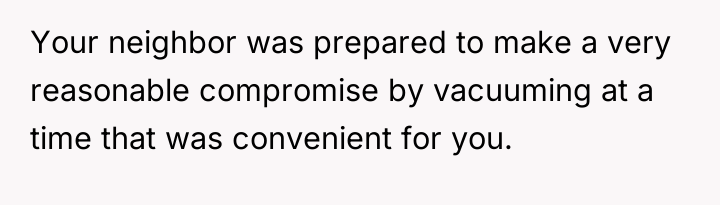 I Told My Neighbor To Stop Vacuuming Her Own Floors And She Completely Shut Me Down