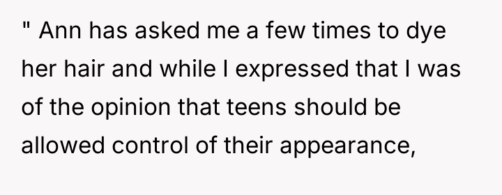 In my opinion, this story beautifully showcases the importance of respecting a teen’s self-expression while balancing parental concerns. The neighbor’s supportive attitude provides a safe space for Ann to explore her individuality, which is essential during adolescence. It also reminds us that sometimes, bridging generational gaps requires patience, understanding, and a little creativity—qualities that this neighbor seems to have in abundance.