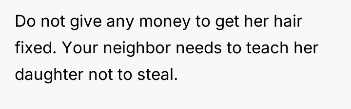 WIBTA for not pay my neighbor to get her daughter’s hair professionally “fixed”?