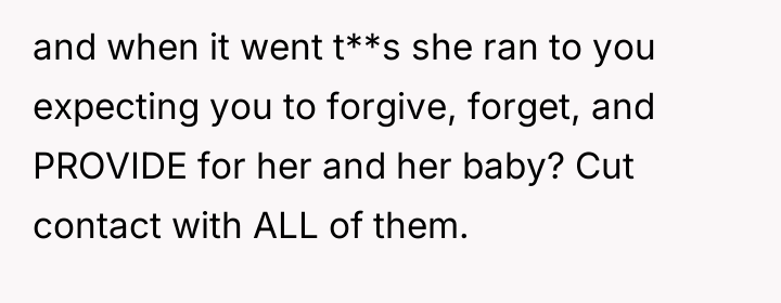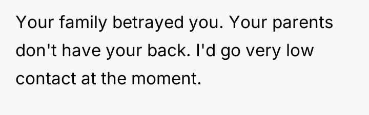 In my opinion, while the original poster's pain is understandable, it's important to recognize that this family will likely face ongoing consequences from this fracture. Healing may require time, boundaries, and perhaps professional mediation if any reconciliation is to occur. Ultimately, the story highlights how betrayal can irreparably damage relationships, but also how difficult it is to navigate the aftermath when children and shared history are involved.