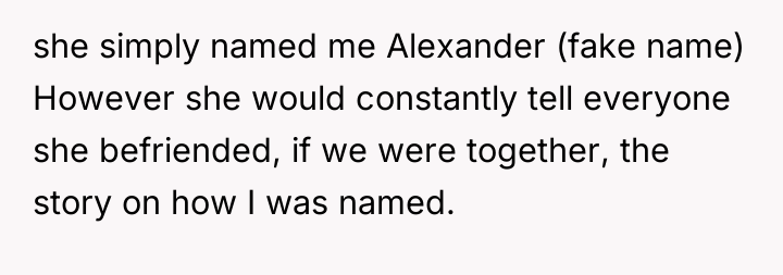 He yearns for respect and understanding, but his plea is met with repeated disregard, as the story of his name is paraded before friends and strangers alike. In the quiet struggle between love and embarrassment, he fights to reclaim his identity beyond the narrative his mother insists on sharing.