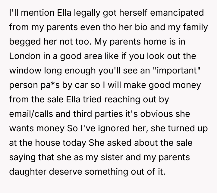 After reading through the Reddit comments, it's clear that many sympathize with the complex family dynamics at play here. Readers noted that Ella's behavior might stem from deep-seated identity struggles and feelings of abandonment despite the adoptive parents’ efforts. Some commenters advised focusing on boundaries and self-care, while others emphasized the importance of empathy for both sides in such complicated sibling relationships.