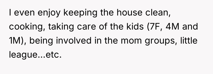 In my opinion, this story highlights the evolving dynamics of modern families, where success and fulfillment are measured by love and support rather than income or traditional roles. The narrator’s choice to embrace full-time fatherhood and household management is commendable, showing that true strength comes from following one’s values and fostering a nurturing environment for the children. It’s a reminder that happiness often lies outside conventional frameworks, and family bonds thrive when nurtured with care and mutual respect.