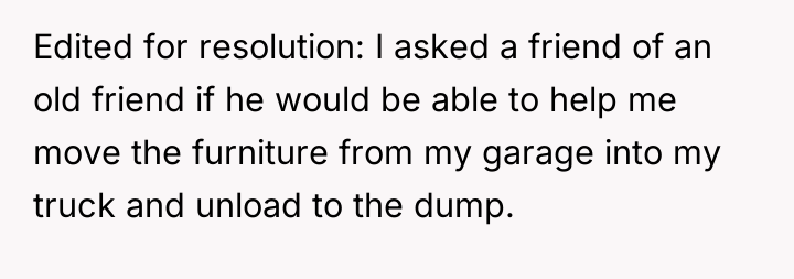 The simple request for help moving items from a cluttered garage has unexpectedly ignited a deeper tension, revealing fractures in their relationship. What seemed like a reasonable favor has become a battleground for boundaries, responsibilities, and the silent question of how much one can ask before the balance tips irreparably.