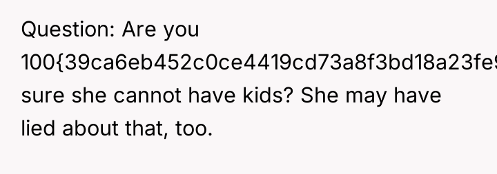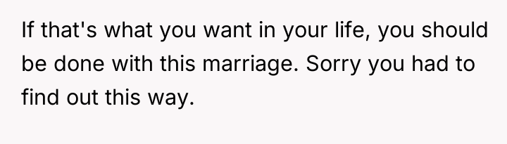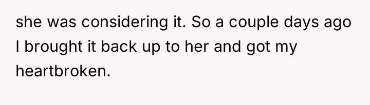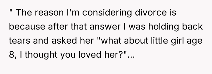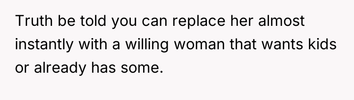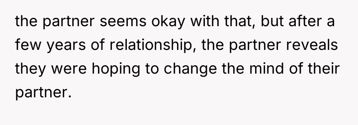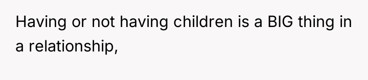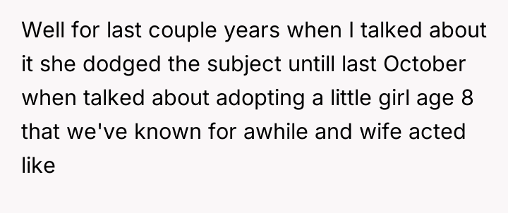 In my opinion, this situation highlights how crucial open and honest communication is in relationships, especially around life-changing decisions like parenthood. The wife's feelings, though difficult for the husband to hear, reveal a fundamental difference in their hopes for the future. Sometimes, love means recognizing when your paths diverge and finding a way forward that honors both partners’ truths—even if that means redefining what family looks like.