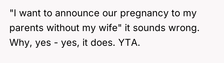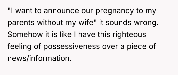 Redditors Descend On Man For Wanting To Share Pregnancy News With His Parents Without His Wife There