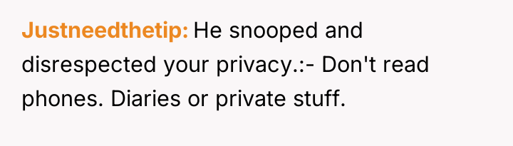 After reading through the Reddit comments, it’s clear that many readers empathize with both sides of the story. Some feel the boyfriend’s reaction was understandable given the emotional impact of unexpectedly discovering a past fling, while others believe he should have communicated his feelings more calmly instead of shutting down. Many also highlight the importance of privacy and trust in relationships, suggesting that going through someone’s personal diary entries without permission can damage trust.