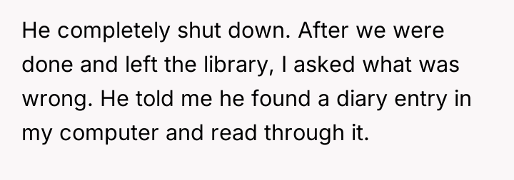 AITA: my boyfriend read my diary without consent and got angry about past lover in there