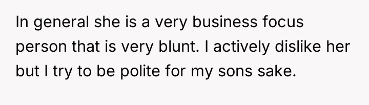 Beneath the polite smiles and strained conversations, a quiet storm brewed. Each passive-aggressive remark chipped away at her spirit, challenging her sense of belonging and respect within the family she cherished. Yet, for her son’s happiness, she endured, hoping for a bridge to understanding in a relationship fraught with silent tension.