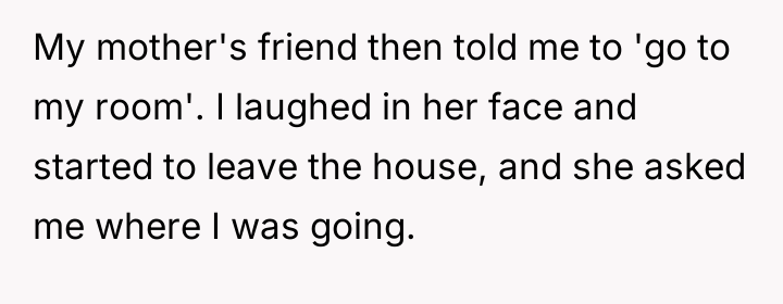 AITA for laughing in my mother's friends face when she told me to 'go to my room'?