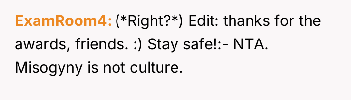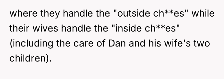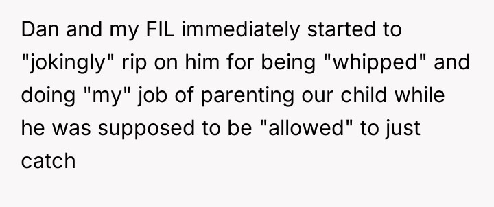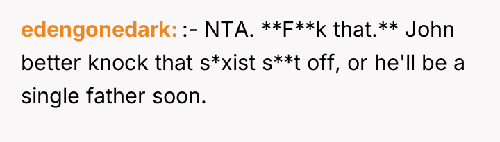 After reading through the Reddit comments, it's clear that many readers empathize with the narrator's frustration and feel that the behavior of John’s father and Dan was inappropriate and outdated. Numerous commenters pointed out how such “jokes” can be thinly veiled attempts to reinforce traditional gender roles, which don’t always fit modern family dynamics. Others appreciated the narrator’s attempt to stay polite in a difficult situation, but agreed that setting boundaries is important to prevent this kind of disrespect from continuing.