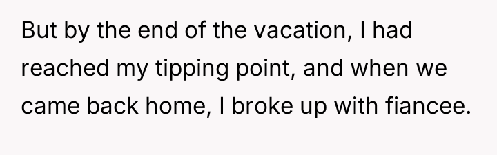 AITAH for breaking up with my fiancee after she surprised me on my vacation with my sibling?