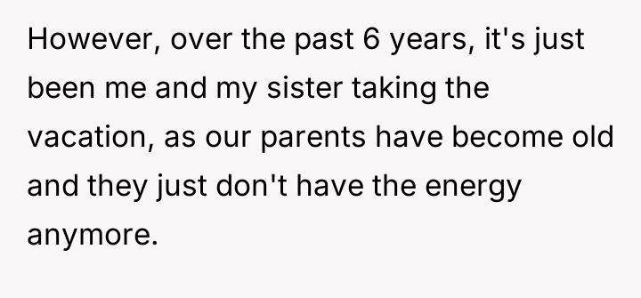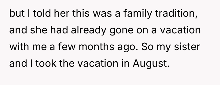 In my opinion, relationships often require a delicate balance between honoring personal values and adapting to a partner’s sensitivities. The narrator’s willingness to accommodate his fiancée’s insecurities shows commitment, but it’s also crucial that both partners feel heard and supported. Traditions like family vacations are meaningful, but they should not come at the expense of the relationship’s health. Ultimately, fostering trust through empathy and honest dialogue can help create a stronger foundation for their future together.