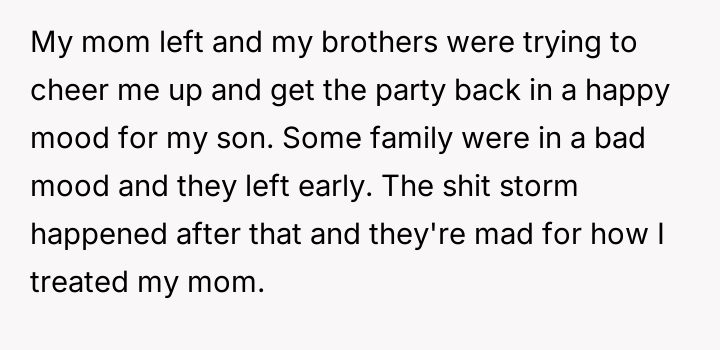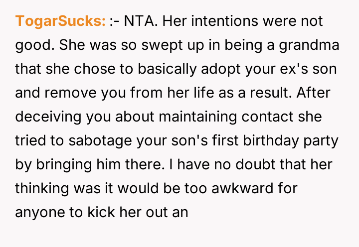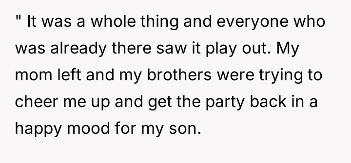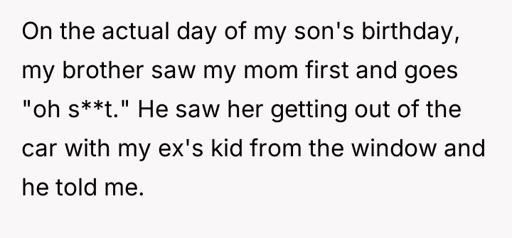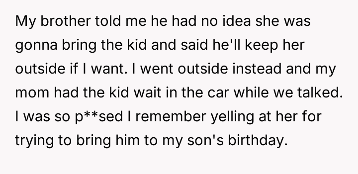 AITA for kicking my mom out of my kid’s party after she tried to bring my ex’s son?