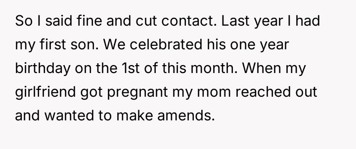 Years later, hope flickered when his mother reached out, seeking to rebuild bridges for the sake of his new son. Yet, on a day meant for celebration, a sudden, chilling encounter threatened to unravel the fragile threads of trust he had dared to weave again.