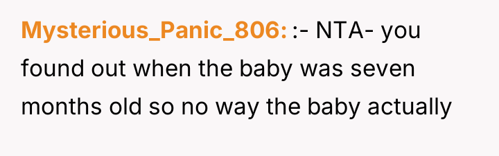 Reading through the Reddit comments, many sympathized with the original poster’s pain and frustration, recognizing the complexity of family dynamics when paternity and loyalty come into play. Some advised setting firm boundaries, while others emphasized forgiveness and the possibility of rebuilding relationships for the sake of the children involved. In my opinion, the key lies in honest communication and prioritizing the well-being of all children, but it’s understandable that trust once broken is hard to repair, especially when family members seem to choose sides.