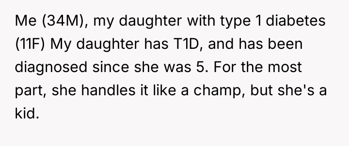 A father watches his brave eleven-year-old daughter navigate the relentless challenges of type 1 diabetes, a battle she has faced since she was five. Though she handles her condition with remarkable strength, the weight of being a child with a chronic illness sometimes presses down heavily, and he never blames her for the moments when it all feels too much.