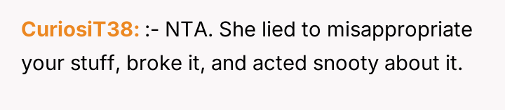 After reading through the Reddit comments, it seems many readers sympathize with the frustration of lending out items only to have them returned damaged or not at all. The consensus is that clear communication and boundaries are crucial when sharing belongings, especially in a neighborhood setting. Some commenters suggested setting up a formal borrowing agreement or at least keeping a detailed record to avoid such misunderstandings in the future.