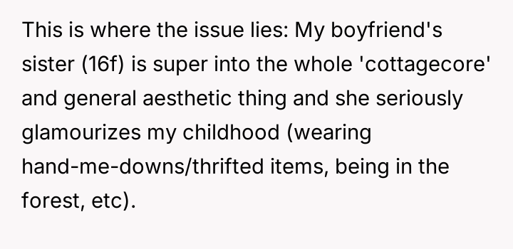 AITA for being honest about my life with my boyfriend's sister who glamourizes my childhood?