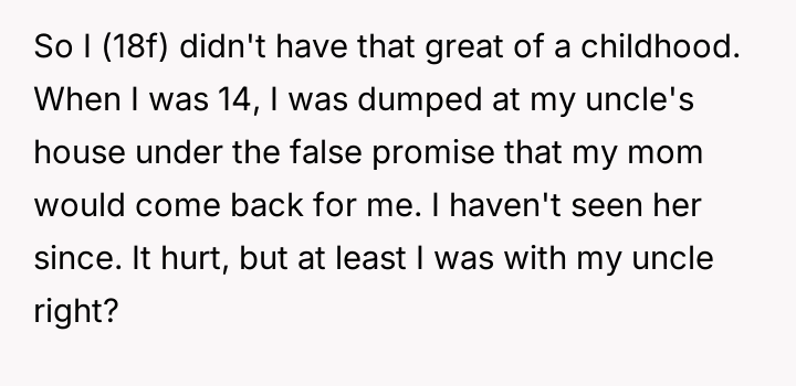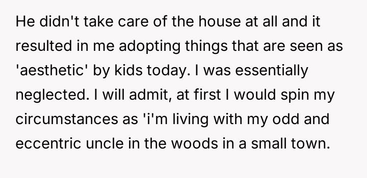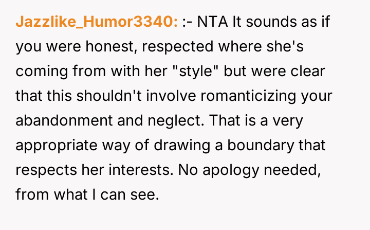 After reading through the Reddit comments, it's clear that many readers empathized deeply with OP's experience, recognizing the complexity of growing up in a neglectful environment despite the presence of a family member. Several commenters praised her honesty and strength in confronting the painful truth rather than romanticizing her past. Others offered supportive advice on seeking therapy and building a future beyond the shadows of her upbringing.