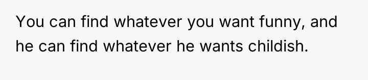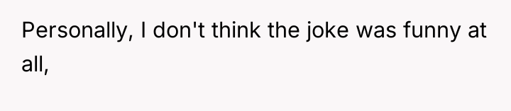 In my opinion, this story highlights how humor, especially when it involves playful teasing, can easily be misinterpreted depending on context and relationships. It's a reminder that open communication about boundaries and feelings is key in maintaining harmony, particularly in family settings. While the joke was silly, acknowledging each other's perspectives can help avoid unnecessary tension.