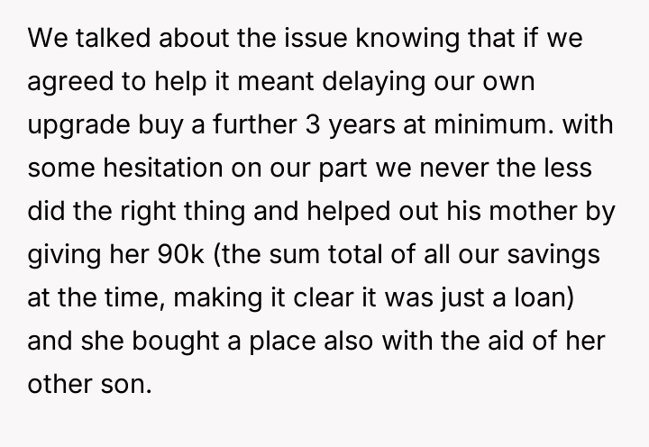 Reading through the Reddit comments, it’s clear that many empathize with the couple’s difficult position—balancing their own dreams with family obligations is never easy. Most commenters acknowledge the kindness and sacrifice involved in helping the partner’s mother, but also emphasize the importance of clear communication and boundaries to avoid resentment. Many suggest that the couple should revisit their financial goals and openly discuss how to navigate the delay in upgrading their home, ensuring that both partners feel heard and supported.