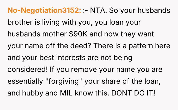 AITA for refusing to take my name of the deed to my mother in laws home ?