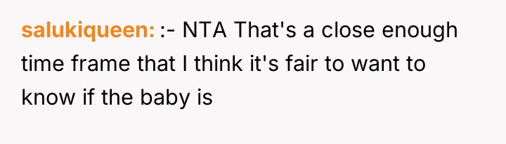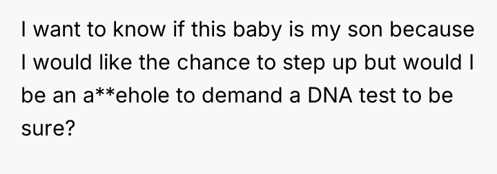 After reading through the Reddit comments, it’s clear that many people empathize with the original poster’s desire for clarity and responsibility. Most agree that requesting a DNA test is not unreasonable, especially since it’s about the well-being and future of a child who could be his. It’s important to approach the situation calmly and respectfully, focusing on the child’s best interests rather than assigning blame or stirring conflict.