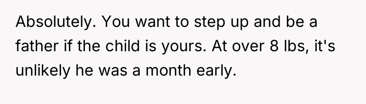 In the end, honesty and communication are key. If the girlfriend refuses a DNA test, it raises valid concerns, but the priority should remain on establishing the truth for the sake of the child. If it turns out the baby is his, stepping up to be involved is commendable. If not, then respecting boundaries and moving on is the healthiest path forward for everyone involved.