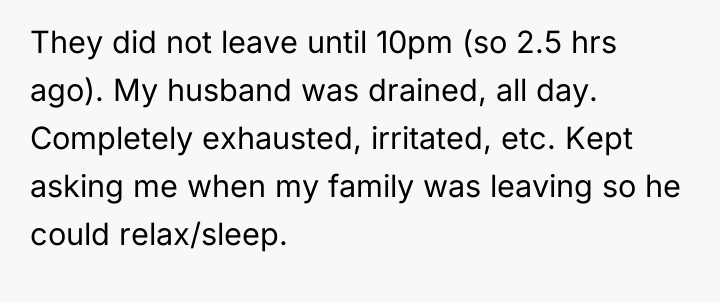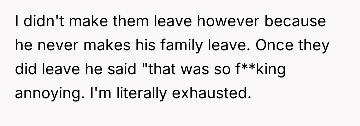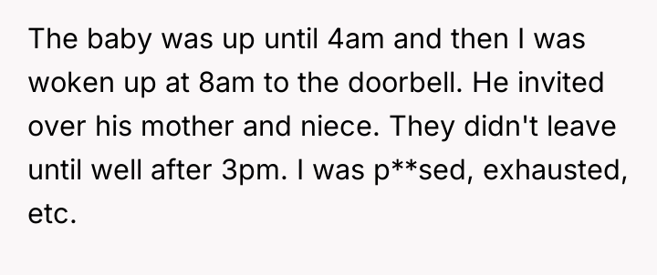Husband Kept Inviting His Family Over While I Was Sleep-Deprived So I Gave Him A Taste