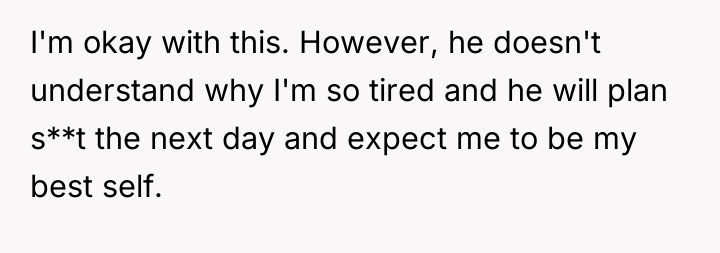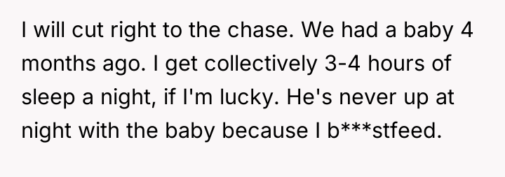 After reading through the Reddit comments, it’s clear that many sympathize with the mother’s exhaustion and frustration. New parenthood is incredibly demanding, and lack of sleep can take a serious toll on one’s physical and emotional well-being. The husband’s lack of awareness and insensitivity to her tiredness seems to be a common point of contention, and many commenters suggest that better communication or shared nighttime duties would help alleviate the tension. The mother’s decision to mirror his behavior by keeping him awake through the night highlights just how desperate she felt to make him understand her struggle.