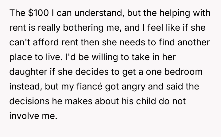 After reading through the Reddit comments, it’s clear that many sympathize with the fiancé’s desire to support his daughter by helping with rent, especially since it ensures a stable home environment for the child. However, a significant portion also understands the fiancée’s concerns about the financial strain and the seemingly open-ended nature of the arrangement. Many suggest that open communication and setting clear boundaries or a formal agreement could help balance the needs of all parties involved while protecting their future together.