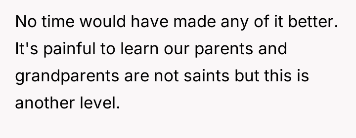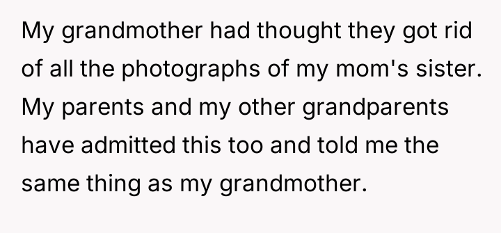 Reading through the Reddit comments, it's clear that many readers empathize deeply with the family’s bittersweet discovery. The revelation of a lost sibling hidden in old photographs adds a layer of complexity to their grief and healing process. Commenters appreciate the sensitivity surrounding the grandmother’s feelings, acknowledging the delicate balance of honoring past memories while navigating new truths. Many expressed hope that the family can find comfort in sharing these stories, even if painful, as a way to remember and cherish the sister who was lost so long ago.