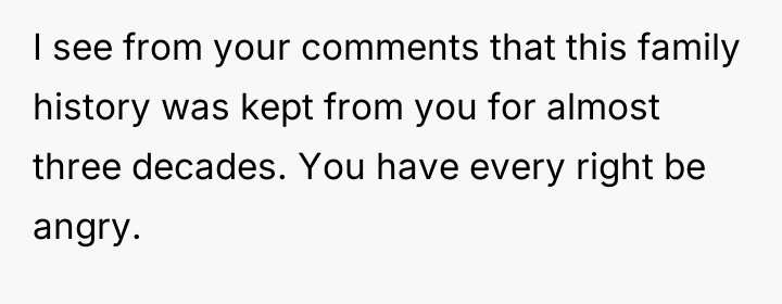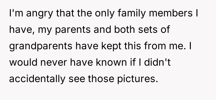 AITA for being angry about my parents and grandparents keeping a secret and hiding a part of our family history from me?