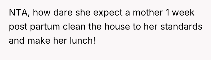 Reading through the Reddit comments, it's clear many sympathized with the new mother’s situation. People praised her for her patience and kindness, while some expressed frustration at the grandmother’s approach, feeling it lacked warmth and respect for the new mom’s boundaries. Many commenters emphasized that while help can be appreciated, it should never come at the cost of making someone feel judged or undervalued, especially during such a vulnerable time.