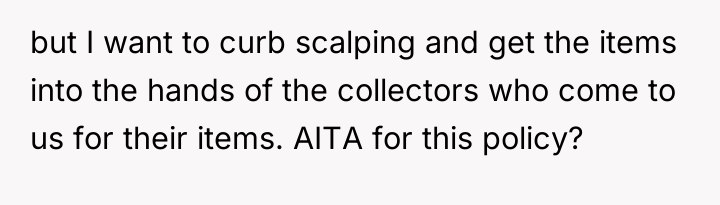 After reading through the Reddit comments, it's clear that many people empathize with the store owner's frustration over scalping practices. Commenters often pointed out how scalping not only hurts small businesses but also alienates genuine fans and collectors who just want to enjoy their hobbies without inflated prices. Some suggested ways to combat scalpers, such as implementing purchase limits or online pre-orders, while others shared their own experiences with similar issues in local stores.